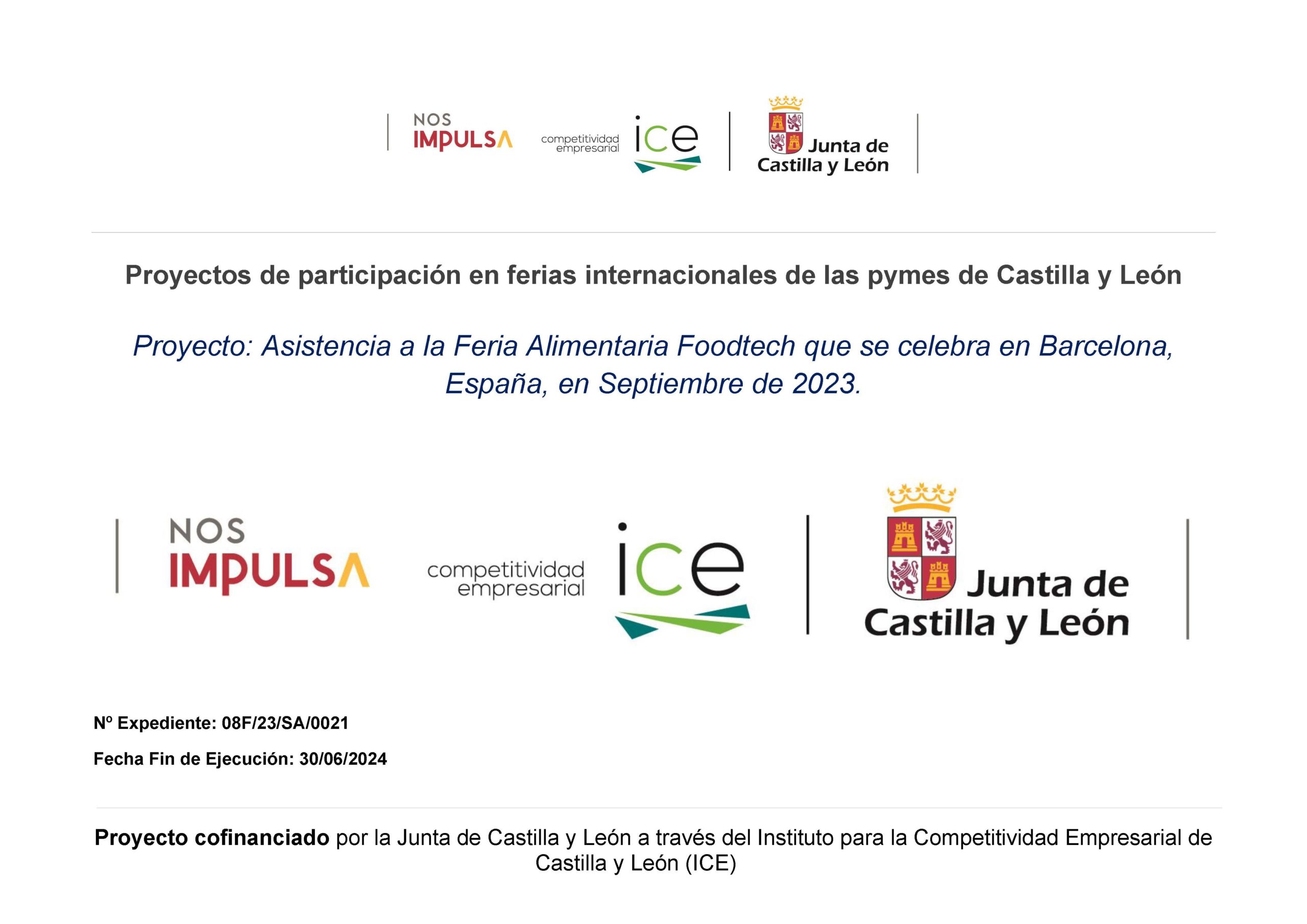 Leer másNuestra presencia como expositores en la pasada feria alimentaria FOODTECH Barcelona 2023 finalmente ha sido apoyada por la linea de subvención que solicitamos a la Junta de Castilla y León.